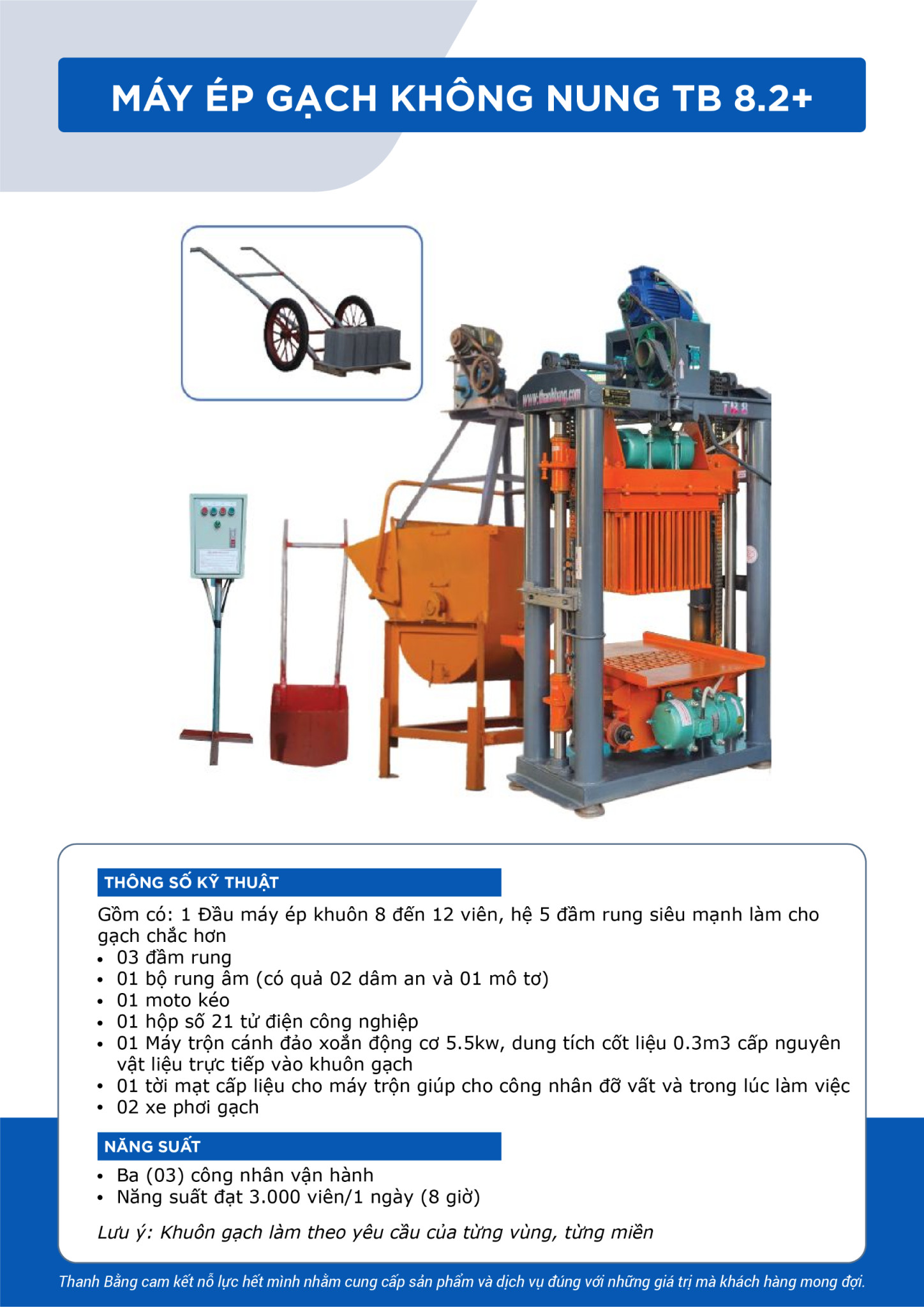 👉Thanh Bằng tự hào giới thiệu Máy Ép Gạch Không Nung TB 8.2+, giải pháp tối ưu cho mọi vấn đề của bạn. Dưới đây là lý do khiến TB 8.2+ trở thành lựa chọn hàng đầu: